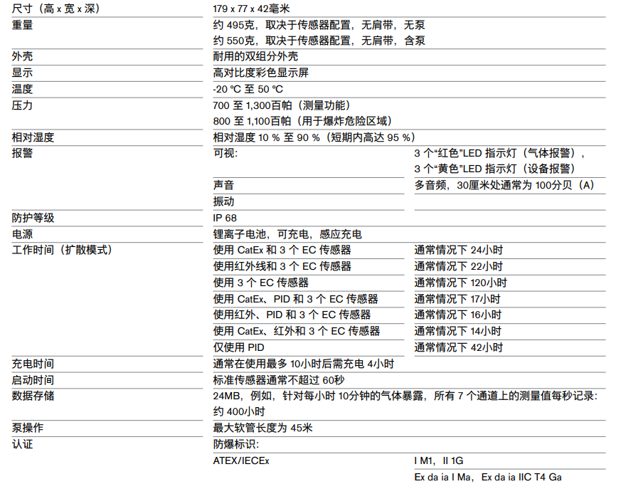 來提醒您。 另外,顯示屏上還會顯示四個預(yù)設(shè)危險(xiǎn)符號(可配置),明確指示是否存在爆炸性或有毒氣體危害。 這可讓用戶完全