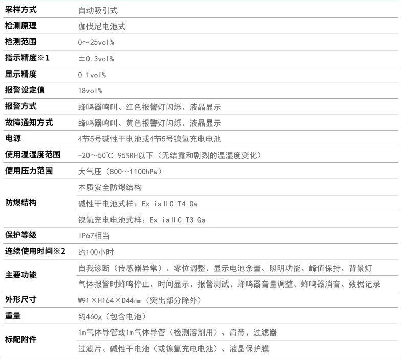· 檢測(cè)0~25vol%的氧氣濃度,通過(guò)報(bào)警音和報(bào)警燈報(bào)警