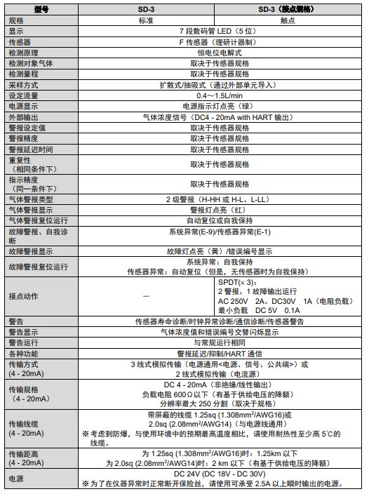 使用溫度范圍:-40~70℃(部分除外);傳感器劣化程度、壽命能夠自動判斷;